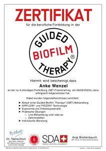 Als GBT-zertifizierte Praxis bieten wir Ihnen zahnmedizinische Prophylaxe auf dem höchsten Niveu an. Die „Guided Biofilm Therapy“ ist ein evidenzbasiertes und indikationsorientiertes